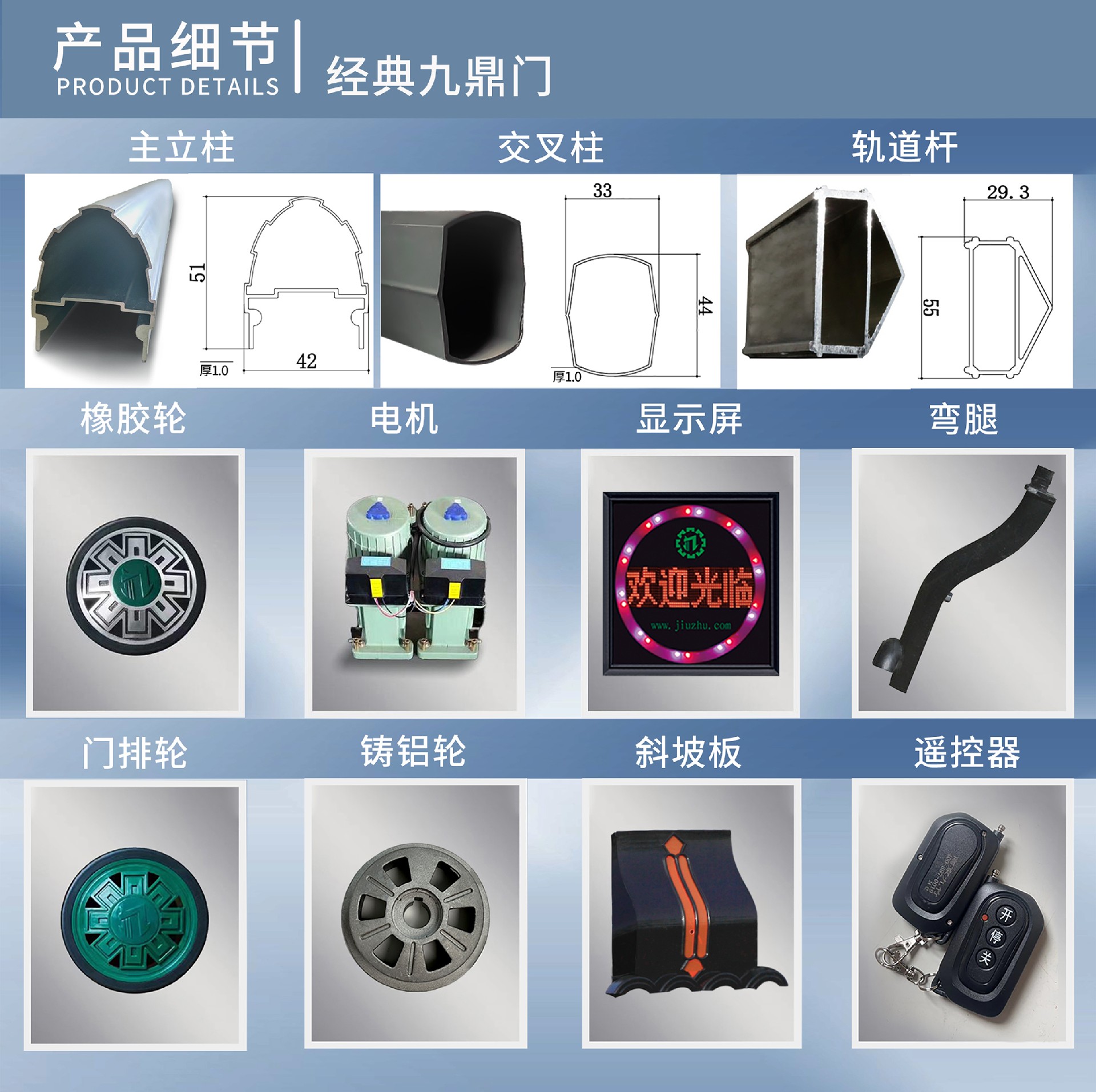 南京九竹科技实业有限公司是一家集电控伸缩门、工业门、通道闸、车牌识别系统、智能科技、弱电工程、等跨行业发展的综合性企业。拥有江苏省著名商标、江苏省名牌产品等多项荣誉,公司相继成功推出专利无轨门,悬浮门,分段门等产品....